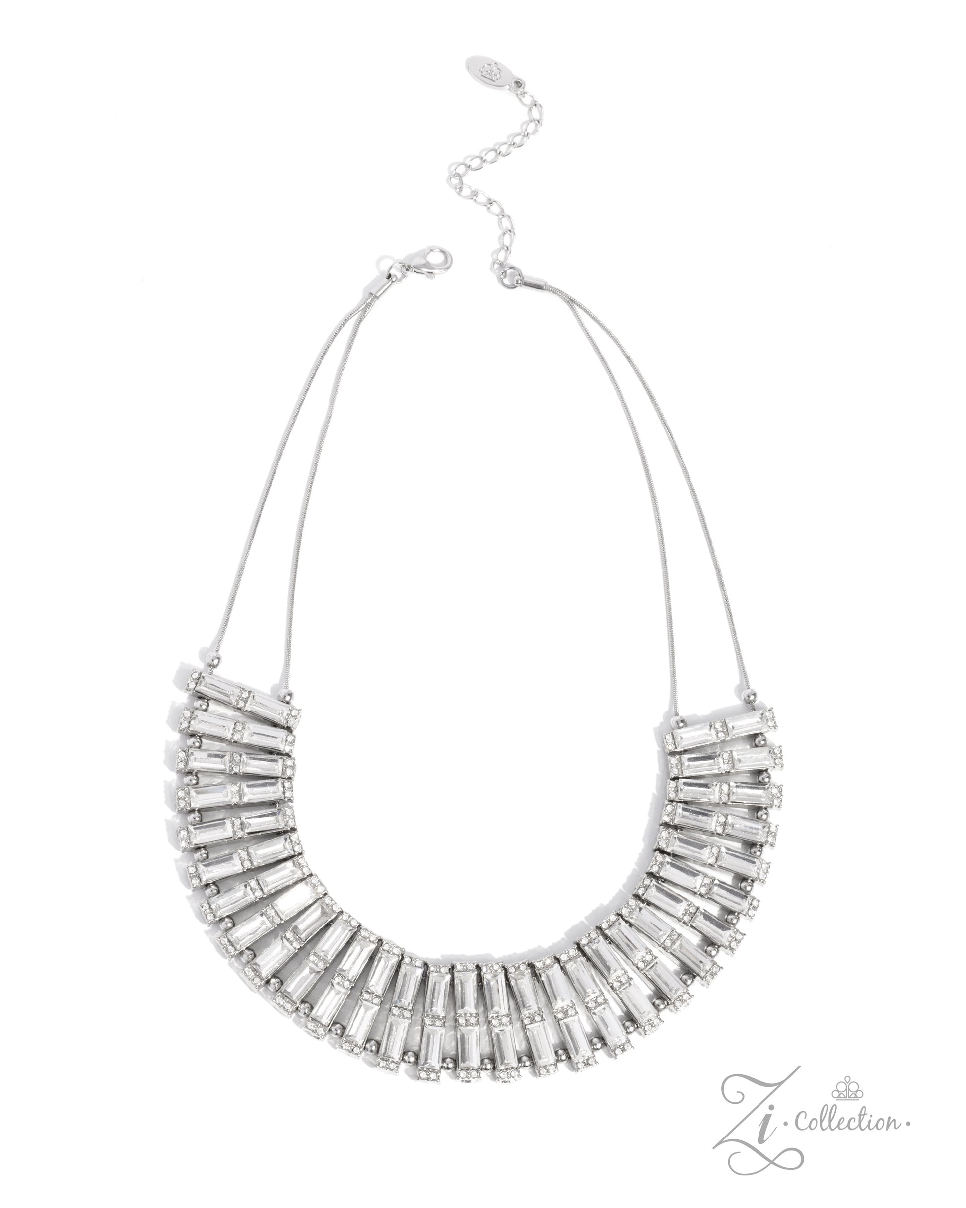 Shimmery bars, made up of stacks of emerald-cut white gems, slide along two skinny snake chains, with sleek metallic beads separating each one. Duos of dainty white rhinestones are stamped across the surface of each layer, emitting a timeless twinkle, resulting in a collision of light-reflecting texture and sheen. Features an adjustable clasp closure.